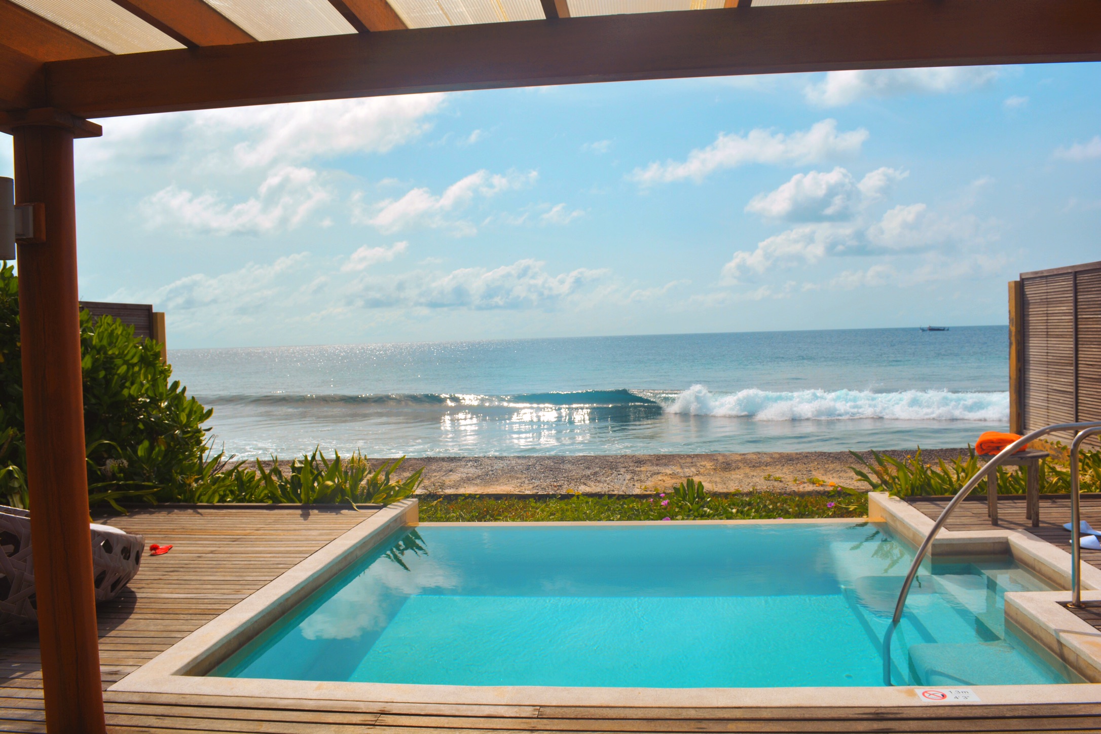 I stayed at the Ocean Pool Villa. Do you want to know what my mornings looked like? As I lay in bed – in front of me was my private pool and beyond that was a huge expanse of sea – and I could see the sun rise and give the most perfect blue color to the sea.